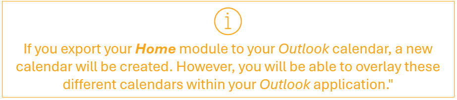 Watch this video for step-by-step instructions: Video: All - Calendar synchronyzation of the ''Home'' module.