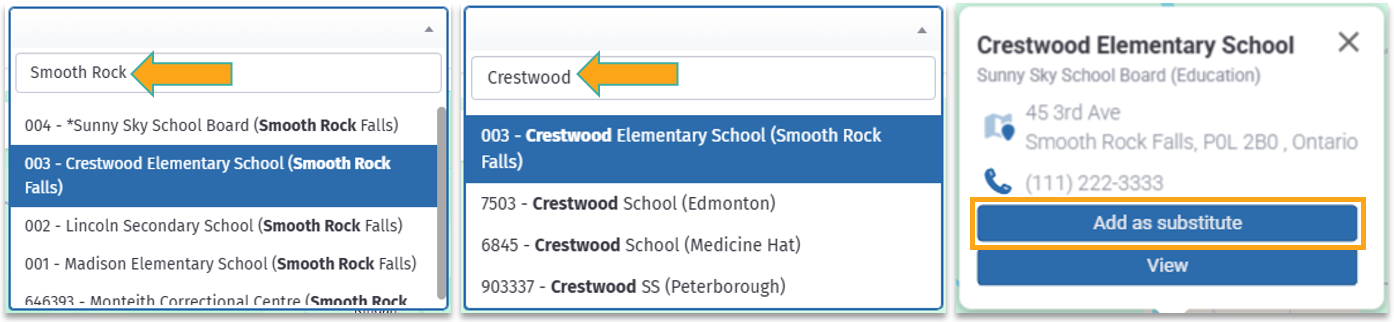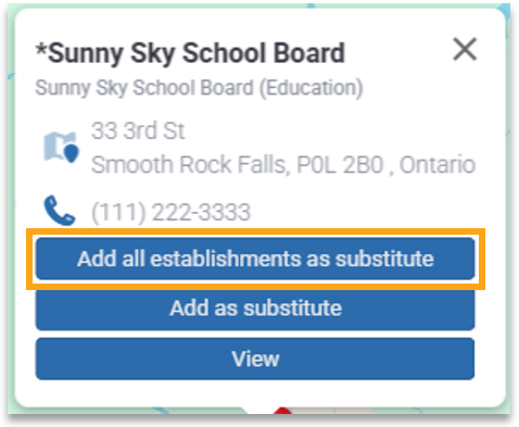 If you would rather add yourself to all of an organization's establishments, search for the establishment with the organization's name and click the Add all establishments as substitute button.