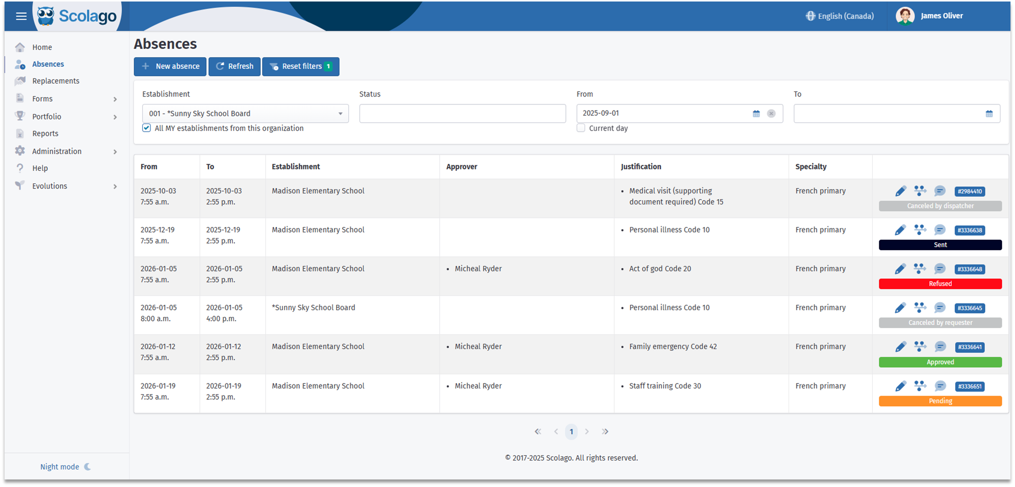 Each absence request is assigned a status, allowing you to track its progress.