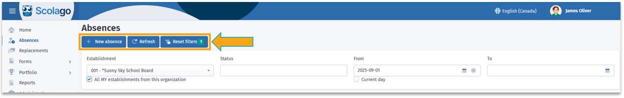 - By establishment: View only the absences linked to a specific establishment. This is especially useful if you work in multiple establishments and want to check absences for each one separately.