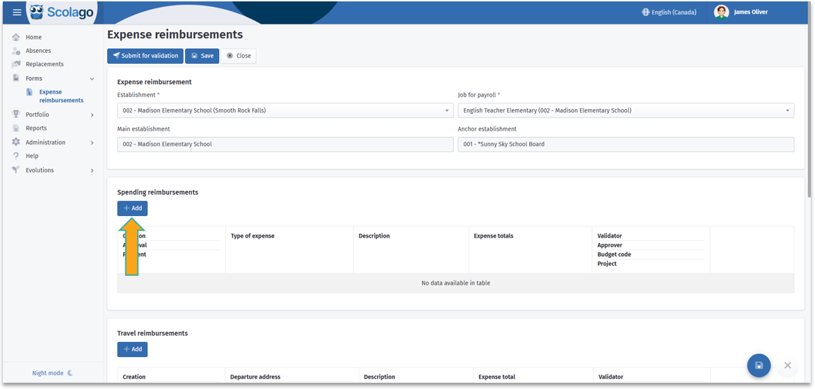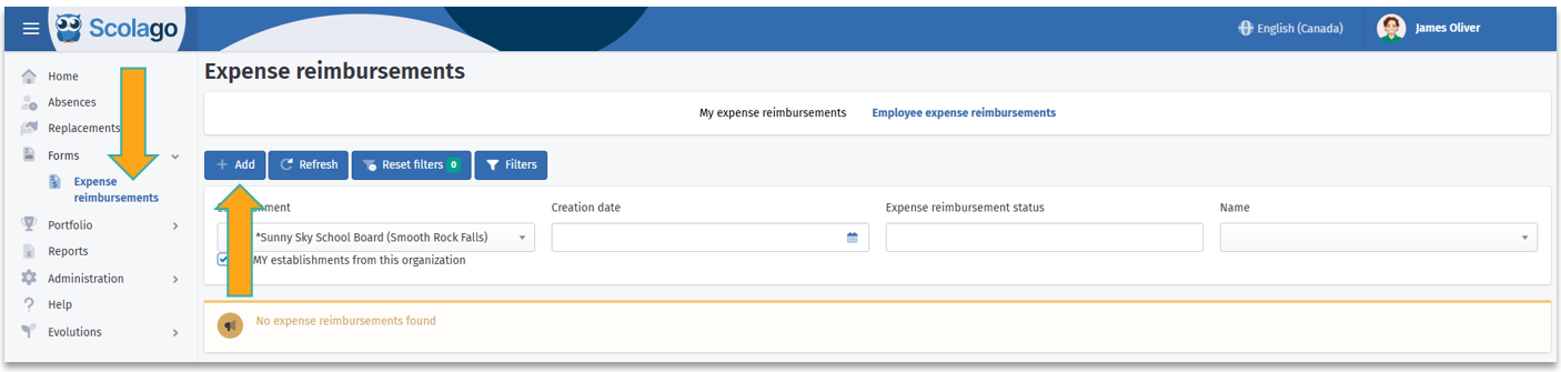 In the left menu, access the module of reimbursements under the section Forms, click on the module Expense reimbursements;