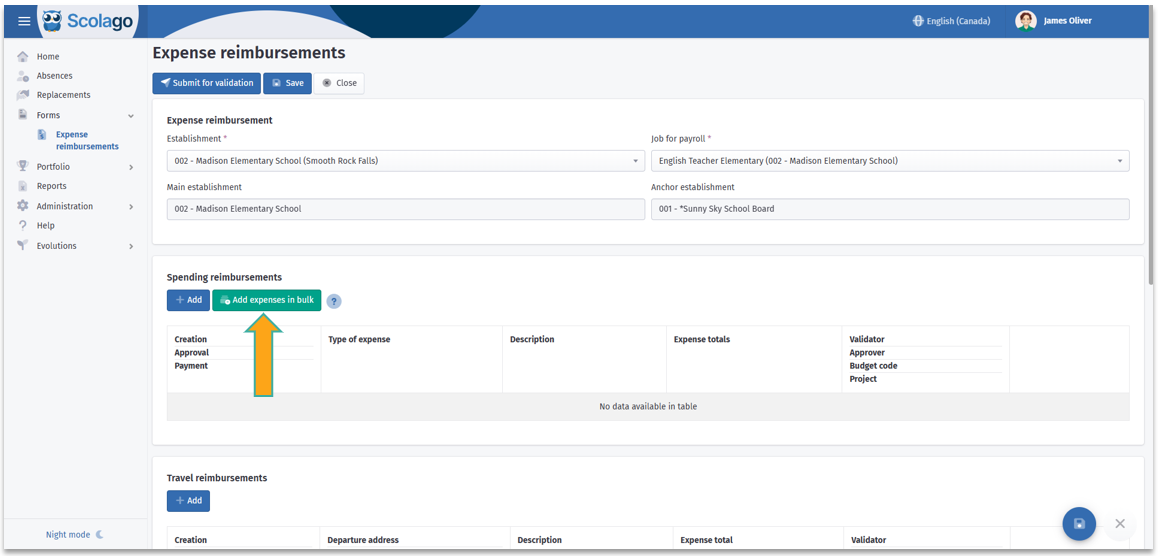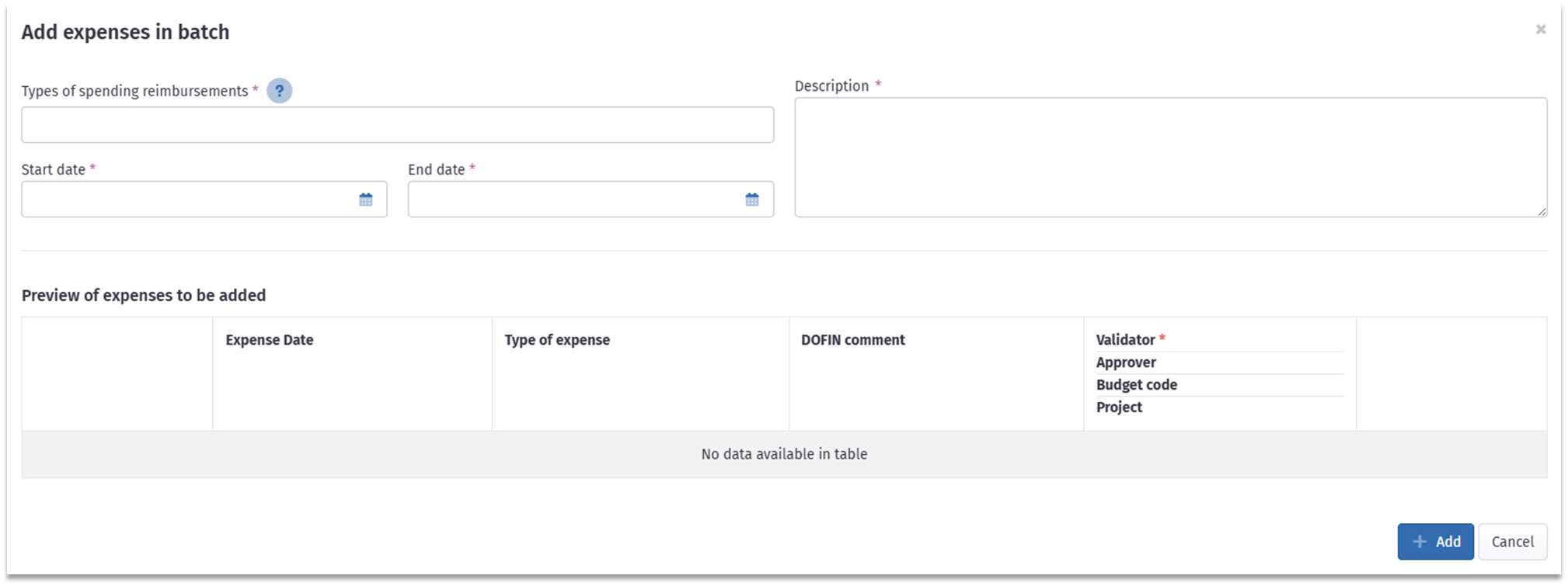 If you have multiple expenses to declare, you can also click the Add expenses in bulk button in the Spending reimbursements section.