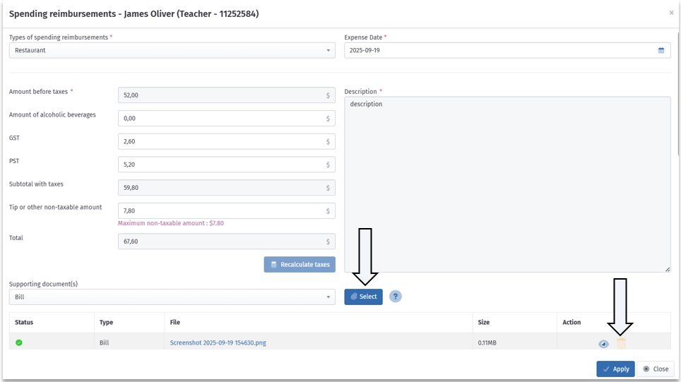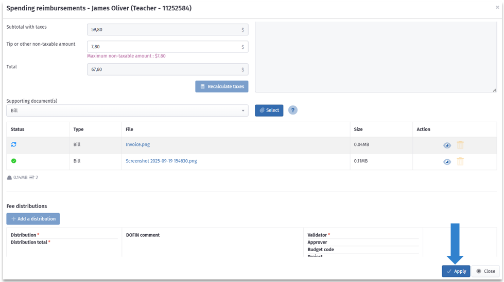 Please note that you can add multiple supporting documents for the same expense, if necessary.