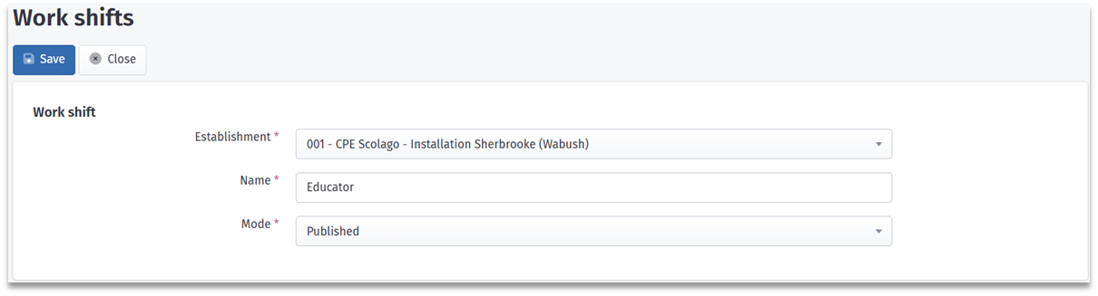 - Name: enter the name you want to give to the shift;