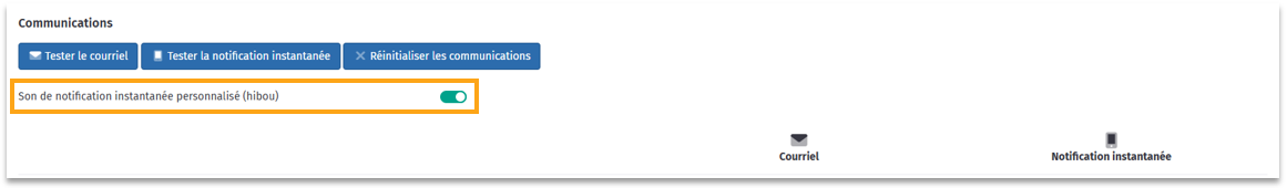 Le dernier bouton vous permet de réinitialiser les choix de communications, c'est-à-dire de remettre tous les interrupteurs actifs pour les courriels et les notifications instantanées. |