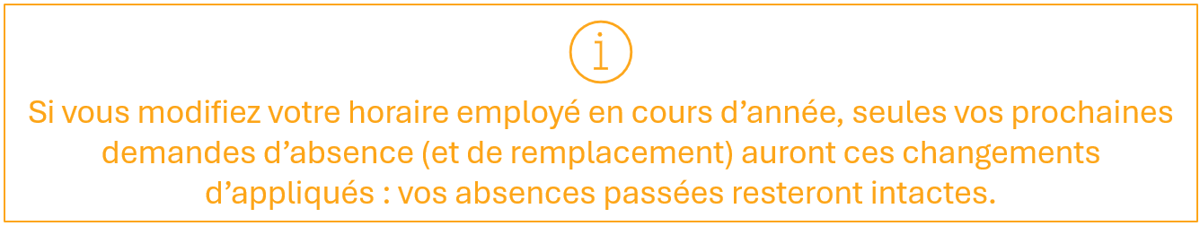 Sachez que vous pouvez détenir plus d’un horaire. S’il a plus d’un horaire qui doit être pris en compte pour le même emploi, ceux-ci se superposeront de manière à bien refléter toutes les périodes où vous devez être remplacé au cours d’une même journée d’absence.