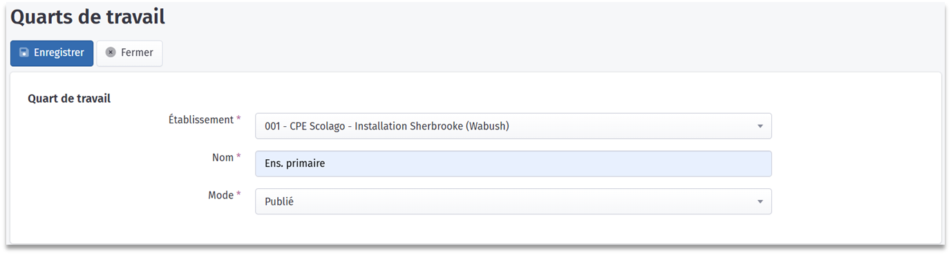 Une fois toutes les périodes configurées, cliquez sur Enregistrer si vous êtez en mode Brouillon. Ainsi, votre quart de travail sera en suspend. Si vous êtes en mode Publié, vous avez deux options d'enregistrement :
