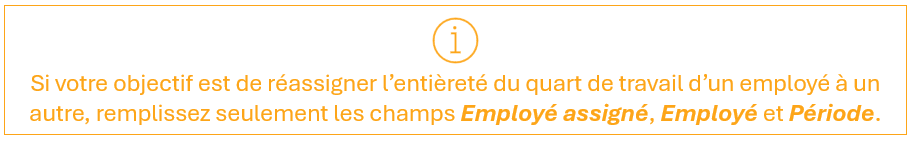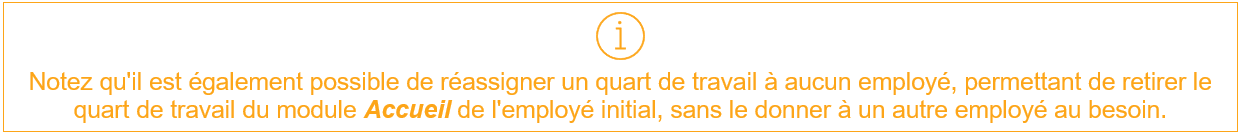 Dans certaines situations, il peut être nécessaire de réassigner un quart de travail déjà planifié à un autre employé