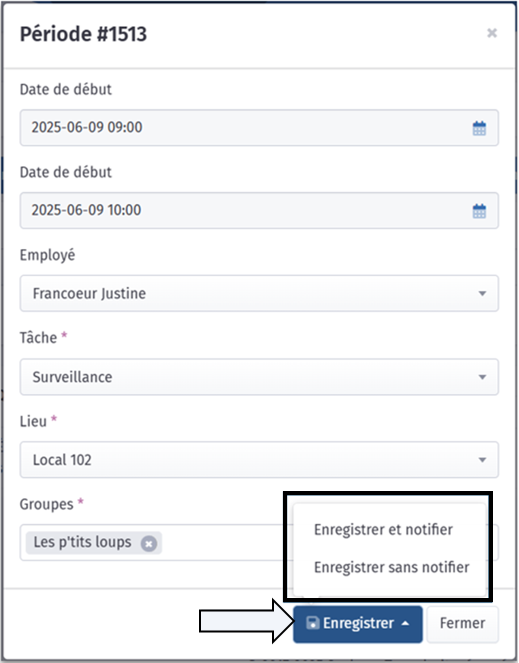 - Enregistrer sans notifier : Aucune notification ne sera envoyée.